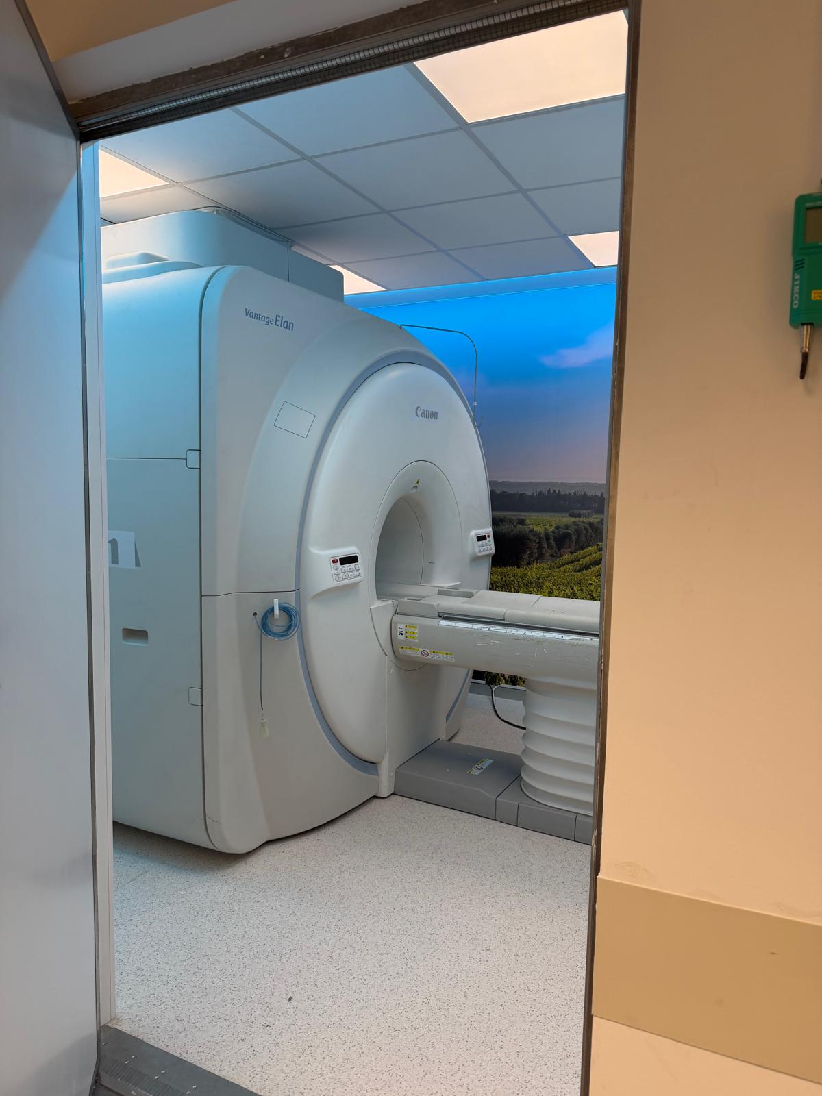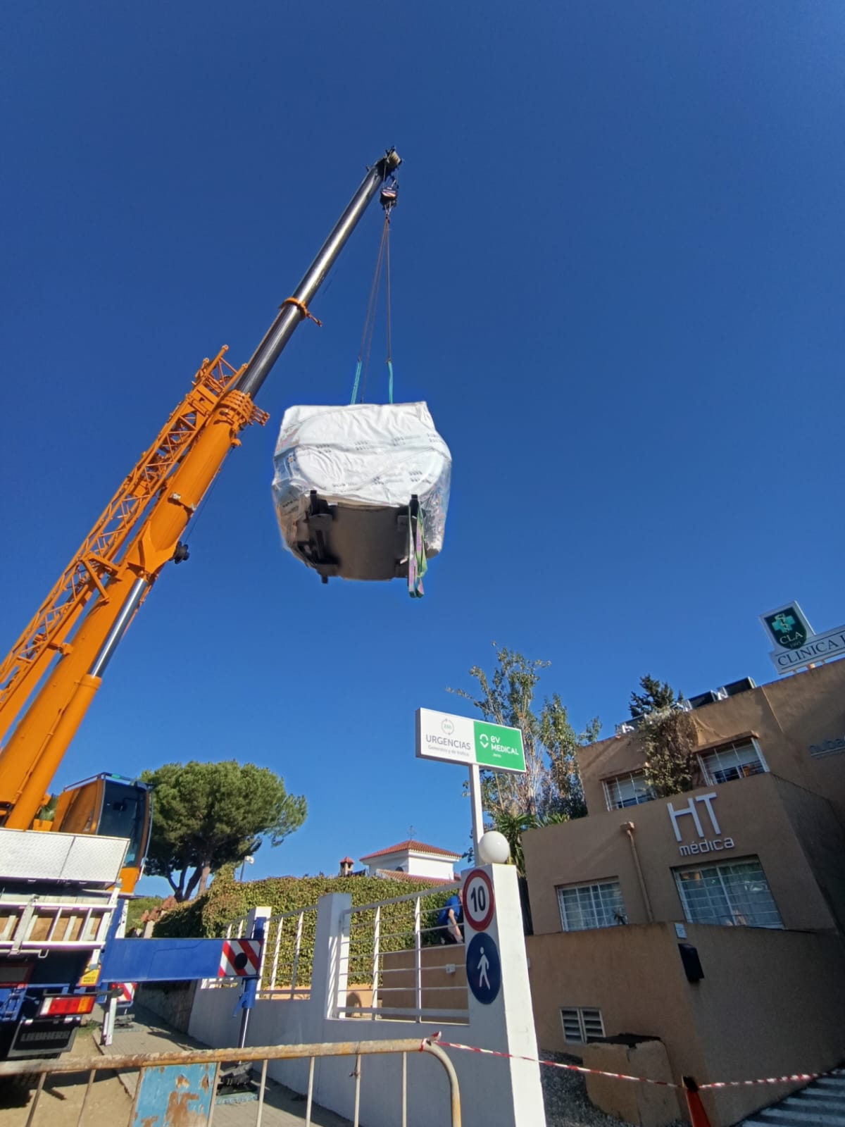 La retirada del equipo anterior y la incorporación de la nueva resonancia se realizaron mediante grúa, conforme a una planificación previa exhaustiva que permitió garantizar la obtención de las licencias dentro de los plazos establecidos. El empleo de este sistema respondió a la necesidad de intervenir a través del forjado del distribuidor situado frente a la puerta de la sala de exploración, al ser este el único recorrido viable para la extracción e introducción del equipo.